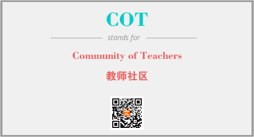 以上为Community of Teachers英文缩略词COT的中文解释,以及该英文缩写在英语的流行度、分类和应用领域方面的信息。