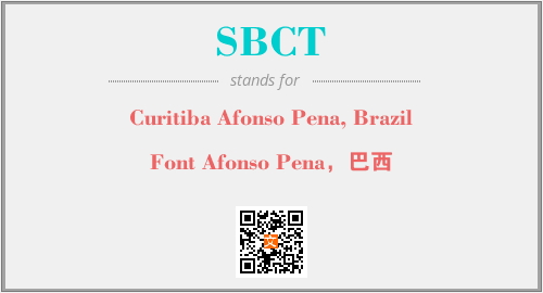 英文缩略词“SBCT”经常作为“Curitiba Afonso Pena, Brazil”的英文缩写来使用,中文表示:“Font Afonso Pena,巴西”。本文将详细介绍英文缩写词SBCT所代表英文单词,其对应的中文拼音、详细解释以及在英语中的流行度。此外,还有关于缩略词SBCT的分类、应用领域及相关应用示例等。