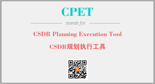 英文缩略词“CPET”经常作为“CSDR Planning Execution Tool”的英文缩写来使用,中文表示:“CSDR规划执行工具”。本文将详细介绍英文缩写词CPET所代表英文单词,其对应的中文拼音、详细解释以及在英语中的流行度。此外,还有关于缩略词CPET的分类、应用领域及相关应用示例等。