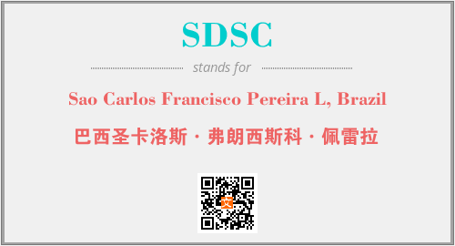 上述内容是“Sao Carlos Francisco Pereira L, Brazil”作为“SDSC”的缩写,解释为“巴西圣卡洛斯·弗朗西斯科·佩雷拉”时的信息,以及英文缩略词SDSC所代表的英文单词,其对应的中文拼音、详细解释以及在英文中的流行度和相关分类、应用领域及应用示例等。