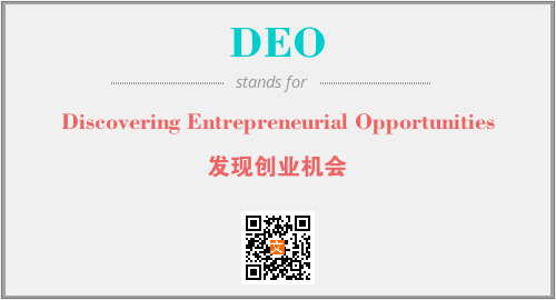 上述内容是“Discovering Entrepreneurial Opportunities”作为“DEO”的缩写,解释为“发现创业机会”时的信息,以及英文缩略词DEO所代表的英文单词,其对应的中文拼音、详细解释以及在英文中的流行度和相关分类、应用领域及应用示例等。