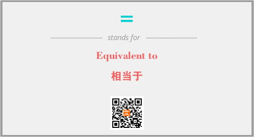 英文缩略词“=”经常作为“Equivalent to”的英文缩写来使用,中文表示:“相当于”。本文将详细介绍英文缩写词=所代表英文单词,其对应的中文拼音、详细解释以及在英语中的流行度。此外,还有关于缩略词=的分类、应用领域及相关应用示例等。
