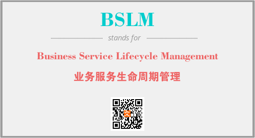 英文缩略词“BSLM”经常作为“Business Service Lifecycle Management”的英文缩写来使用,中文表示:“业务服务生命周期管理”。本文将详细介绍英文缩写词BSLM所代表英文单词,其对应的中文拼音、详细解释以及在英语中的流行度。此外,还有关于缩略词BSLM的分类、应用领域及相关应用示例等。