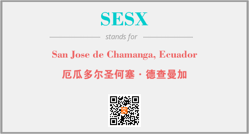 英文缩略词“SESX”经常作为“San Jose de Chamanga, Ecuador”的英文缩写来使用,中文表示:“厄瓜多尔圣何塞·德查曼加”。本文将详细介绍英文缩写词SESX所代表英文单词,其对应的中文拼音、详细解释以及在英语中的流行度。此外,还有关于缩略词SESX的分类、应用领域及相关应用示例等。