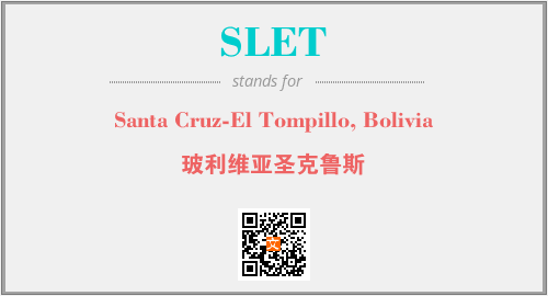 上述内容是“Santa Cruz-El Tompillo, Bolivia”作为“SLET”的缩写,解释为“玻利维亚圣克鲁斯”时的信息,以及英文缩略词SLET所代表的英文单词,其对应的中文拼音、详细解释以及在英文中的流行度和相关分类、应用领域及应用示例等。