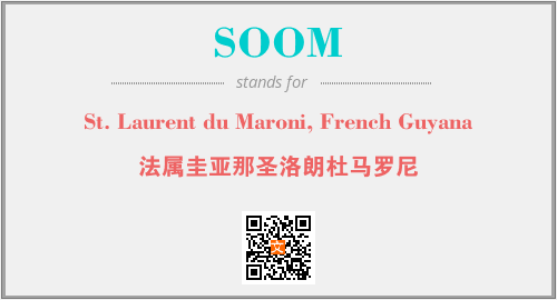 上述内容是“St. Laurent du Maroni, French Guyana”作为“SOOM”的缩写,解释为“法属圭亚那圣洛朗杜马罗尼”时的信息,以及英文缩略词SOOM所代表的英文单词,其对应的中文拼音、详细解释以及在英文中的流行度和相关分类、应用领域及应用示例等。