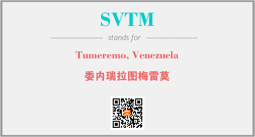 英文缩略词“SVTM”经常作为“Tumeremo, Venezuela”的英文缩写来使用,中文表示:“委内瑞拉图梅雷莫”。本文将详细介绍英文缩写词SVTM所代表英文单词,其对应的中文拼音、详细解释以及在英语中的流行度。此外,还有关于缩略词SVTM的分类、应用领域及相关应用示例等。
