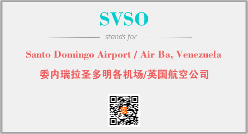 上述内容是“Santo Domingo Airport / Air Ba, Venezuela”作为“SVSO”的缩写,解释为“委内瑞拉圣多明各机场/英国航空公司”时的信息,以及英文缩略词SVSO所代表的英文单词,其对应的中文拼音、详细解释以及在英文中的流行度和相关分类、应用领域及应用示例等。