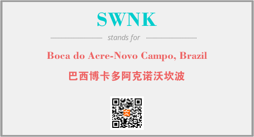上述内容是“Boca do Acre-Novo Campo, Brazil”作为“SWNK”的缩写,解释为“巴西博卡多阿克诺沃坎波”时的信息,以及英文缩略词SWNK所代表的英文单词,其对应的中文拼音、详细解释以及在英文中的流行度和相关分类、应用领域及应用示例等。