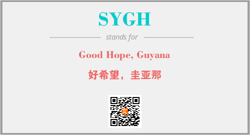 上述内容是“Good Hope, Guyana”作为“SYGH”的缩写,解释为“好希望,圭亚那”时的信息,以及英文缩略词SYGH所代表的英文单词,其对应的中文拼音、详细解释以及在英文中的流行度和相关分类、应用领域及应用示例等。