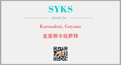 上述内容是“Karasabai, Guyana”作为“SYKS”的缩写,解释为“圭亚那卡拉萨拜”时的信息,以及英文缩略词SYKS所代表的英文单词,其对应的中文拼音、详细解释以及在英文中的流行度和相关分类、应用领域及应用示例等。