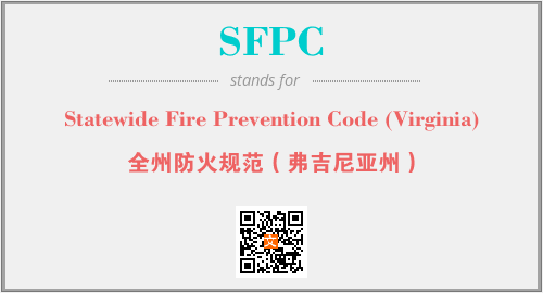 上述内容是“Statewide Fire Prevention Code (Virginia)”作为“SFPC”的缩写,解释为“全州防火规范(弗吉尼亚州)”时的信息,以及英文缩略词SFPC所代表的英文单词,其对应的中文拼音、详细解释以及在英文中的流行度和相关分类、应用领域及应用示例等。