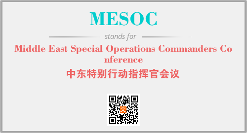 上述内容是“Middle East Special Operations Commanders Conference”作为“MESOC”的缩写,解释为“中东特别行动指挥官会议”时的信息,以及英文缩略词MESOC所代表的英文单词,其对应的中文拼音、详细解释以及在英文中的流行度和相关分类、应用领域及应用示例等。