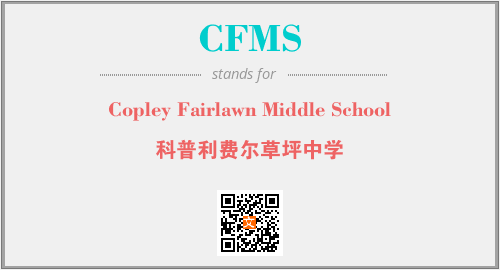 上述内容是“Copley Fairlawn Middle School”作为“CFMS”的缩写,解释为“科普利费尔草坪中学”时的信息,以及英文缩略词CFMS所代表的英文单词,其对应的中文拼音、详细解释以及在英文中的流行度和相关分类、应用领域及应用示例等。