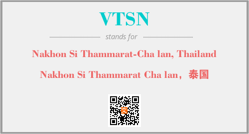 英文缩略词“VTSN”经常作为“Nakhon Si Thammarat-Cha lan, Thailand”的英文缩写来使用,中文表示:“Nakhon Si Thammarat Cha lan,泰国”。本文将详细介绍英文缩写词VTSN所代表英文单词,其对应的中文拼音、详细解释以及在英语中的流行度。此外,还有关于缩略词VTSN的分类、应用领域及相关应用示例等。