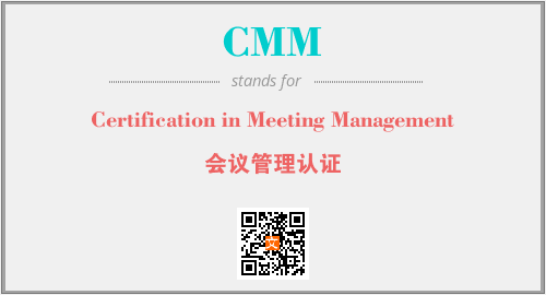 英文缩略词“CMM”经常作为“Certification in Meeting Management”的英文缩写来使用,中文表示:“会议管理认证”。本文将详细介绍英文缩写词CMM所代表英文单词,其对应的中文拼音、详细解释以及在英语中的流行度。此外,还有关于缩略词CMM的分类、应用领域及相关应用示例等。