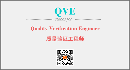 英文缩略词“QVE”经常作为“Quality Verification Engineer”的英文缩写来使用,中文表示:“质量验证工程师”。本文将详细介绍英文缩写词QVE所代表英文单词,其对应的中文拼音、详细解释以及在英语中的流行度。此外,还有关于缩略词QVE的分类、应用领域及相关应用示例等。
