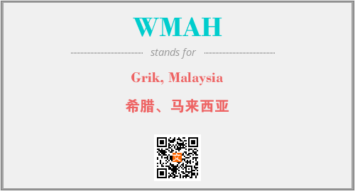 英文缩略词“WMAH”经常作为“Grik, Malaysia”的英文缩写来使用,中文表示:“希腊、马来西亚”。本文将详细介绍英文缩写词WMAH所代表英文单词,其对应的中文拼音、详细解释以及在英语中的流行度。此外,还有关于缩略词WMAH的分类、应用领域及相关应用示例等。