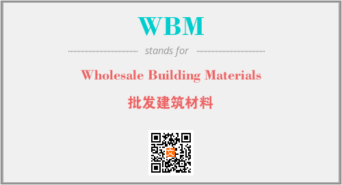 英文缩略词“WBM”经常作为“Wholesale Building Materials”的英文缩写来使用,中文表示:“批发建筑材料”。本文将详细介绍英文缩写词WBM所代表英文单词,其对应的中文拼音、详细解释以及在英语中的流行度。此外,还有关于缩略词WBM的分类、应用领域及相关应用示例等。