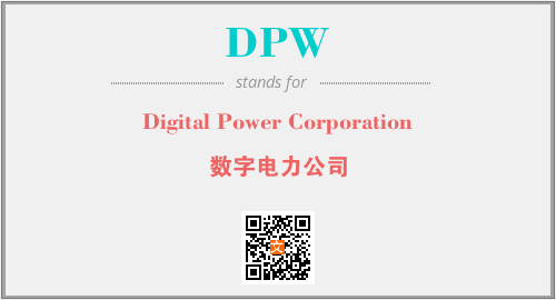 上述内容是“Digital Power Corporation”作为“DPW”的缩写,解释为“数字电力公司”时的信息,以及英文缩略词DPW所代表的英文单词,其对应的中文拼音、详细解释以及在英文中的流行度和相关分类、应用领域及应用示例等。