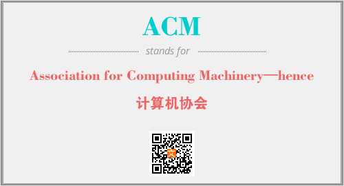 英文缩略词“ACM”经常作为“Association for Computing Machinery—hence”的英文缩写来使用,中文表示:“计算机协会”。本文将详细介绍英文缩写词ACM所代表英文单词,其对应的中文拼音、详细解释以及在英语中的流行度。此外,还有关于缩略词ACM的分类、应用领域及相关应用示例等。