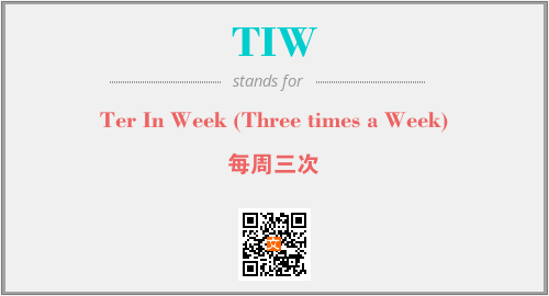 英文缩略词“TIW”经常作为“Ter In Week (Three times a Week)”的英文缩写来使用,中文表示:“每周三次”。本文将详细介绍英文缩写词TIW所代表英文单词,其对应的中文拼音、详细解释以及在英语中的流行度。此外,还有关于缩略词TIW的分类、应用领域及相关应用示例等。