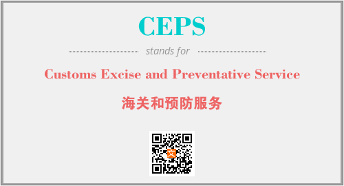 英文缩略词“CEPS”经常作为“Customs Excise and Preventative Service”的英文缩写来使用,中文表示:“海关和预防服务”。本文将详细介绍英文缩写词CEPS所代表英文单词,其对应的中文拼音、详细解释以及在英语中的流行度。此外,还有关于缩略词CEPS的分类、应用领域及相关应用示例等。