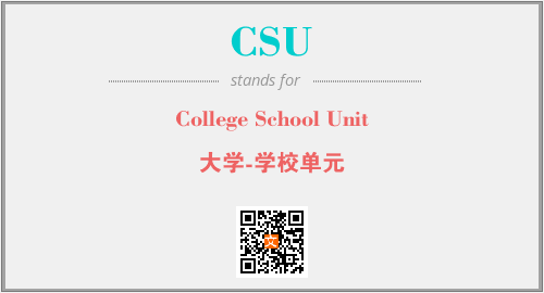 英文缩略词“CSU”经常作为“College School Unit”的英文缩写来使用,中文表示:“大学-学校单元”。本文将详细介绍英文缩写词CSU所代表英文单词,其对应的中文拼音、详细解释以及在英语中的流行度。此外,还有关于缩略词CSU的分类、应用领域及相关应用示例等。