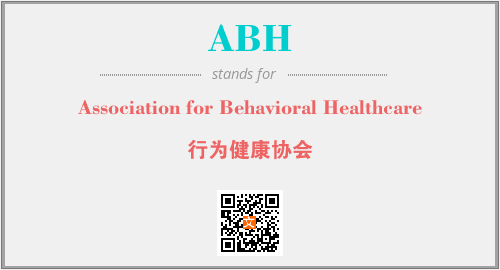 英文缩略词“ABH”经常作为“Association for Behavioral Healthcare”的英文缩写来使用,中文表示:“行为健康协会”。本文将详细介绍英文缩写词ABH所代表英文单词,其对应的中文拼音、详细解释以及在英语中的流行度。此外,还有关于缩略词ABH的分类、应用领域及相关应用示例等。