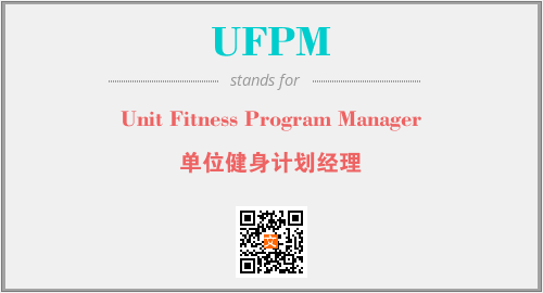 上述内容是“Unit Fitness Program Manager”作为“UFPM”的缩写,解释为“单位健身计划经理”时的信息,以及英文缩略词UFPM所代表的英文单词,其对应的中文拼音、详细解释以及在英文中的流行度和相关分类、应用领域及应用示例等。