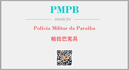 英文缩略词“PMPB”经常作为“Polícia Militar da Paraíba”的英文缩写来使用,中文表示:“帕拉巴宪兵”。本文将详细介绍英文缩写词PMPB所代表英文单词,其对应的中文拼音、详细解释以及在英语中的流行度。此外,还有关于缩略词PMPB的分类、应用领域及相关应用示例等。