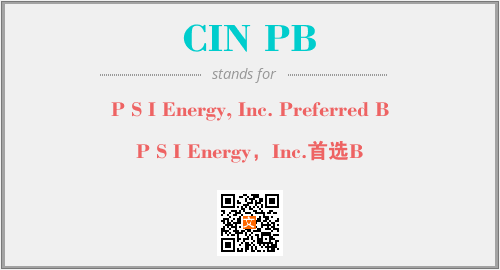 上述内容是“P S I Energy, Inc. Preferred B”作为“CIN PB”的缩写,解释为“P S I Energy,Inc.首选B”时的信息,以及英文缩略词CIN PB所代表的英文单词,其对应的中文拼音、详细解释以及在英文中的流行度和相关分类、应用领域及应用示例等。
