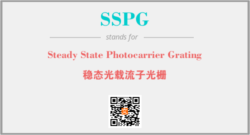 英文缩略词“SSPG”经常作为“Steady State Photocarrier Grating”的英文缩写来使用,中文表示:“稳态光载流子光栅”。本文将详细介绍英文缩写词SSPG所代表英文单词,其对应的中文拼音、详细解释以及在英语中的流行度。此外,还有关于缩略词SSPG的分类、应用领域及相关应用示例等。