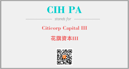 英文缩略词“CIH PA”经常作为“Citicorp Capital III”的英文缩写来使用,中文表示:“花旗资本III”。本文将详细介绍英文缩写词CIH PA所代表英文单词,其对应的中文拼音、详细解释以及在英语中的流行度。此外,还有关于缩略词CIH PA的分类、应用领域及相关应用示例等。