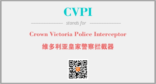上述内容是“Crown Victoria Police Interceptor”作为“CVPI”的缩写,解释为“维多利亚皇家警察拦截器”时的信息,以及英文缩略词CVPI所代表的英文单词,其对应的中文拼音、详细解释以及在英文中的流行度和相关分类、应用领域及应用示例等。