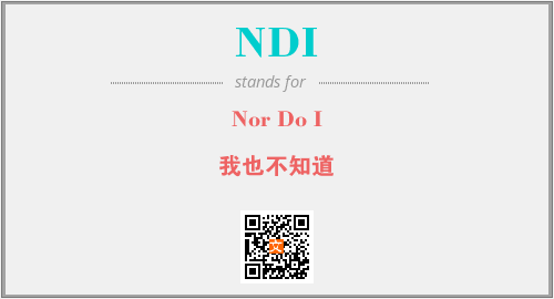 英文缩略词“NDI”经常作为“Nor Do I”的英文缩写来使用,中文表示:“我也不知道”。本文将详细介绍英文缩写词NDI所代表英文单词,其对应的中文拼音、详细解释以及在英语中的流行度。此外,还有关于缩略词NDI的分类、应用领域及相关应用示例等。