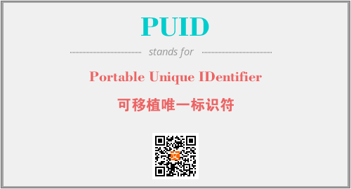 上述内容是“Portable Unique IDentifier”作为“PUID”的缩写,解释为“可移植唯一标识符”时的信息,以及英文缩略词PUID所代表的英文单词,其对应的中文拼音、详细解释以及在英文中的流行度和相关分类、应用领域及应用示例等。