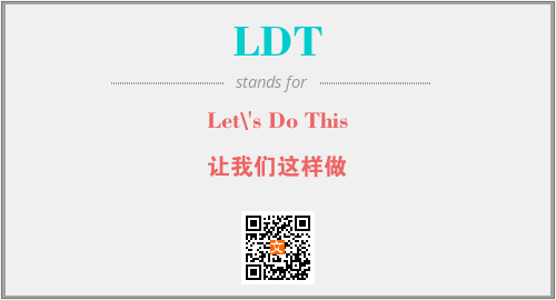 以上为Let\'s Do This英文缩略词LDT的中文解释,以及该英文缩写在英语的流行度、分类和应用领域方面的信息。