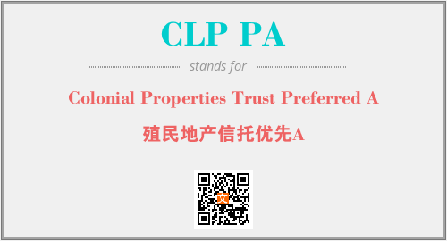 以上为Colonial Properties Trust Preferred A英文缩略词CLP PA的中文解释,以及该英文缩写在英语的流行度、分类和应用领域方面的信息。