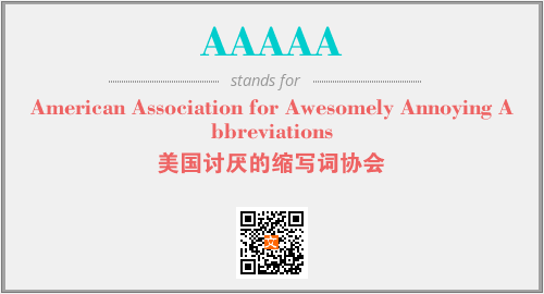 英文缩略词“AAAAA”经常作为“American Association for Awesomely Annoying Abbreviations”的英文缩写来使用,中文表示:“美国讨厌的缩写词协会”。本文将详细介绍英文缩写词AAAAA所代表英文单词,其对应的中文拼音、详细解释以及在英语中的流行度。此外,还有关于缩略词AAAAA的分类、应用领域及相关应用示例等。