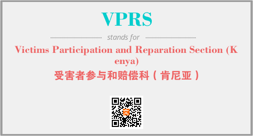 上述内容是“Victims Participation and Reparation Section (Kenya)”作为“VPRS”的缩写,解释为“受害者参与和赔偿科(肯尼亚)”时的信息,以及英文缩略词VPRS所代表的英文单词,其对应的中文拼音、详细解释以及在英文中的流行度和相关分类、应用领域及应用示例等。