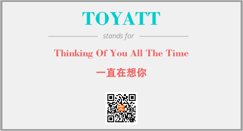 英文缩略词“TOYATT”经常作为“Thinking Of You All The Time”的英文缩写来使用,中文表示:“一直在想你”。本文将详细介绍英文缩写词TOYATT所代表英文单词,其对应的中文拼音、详细解释以及在英语中的流行度。此外,还有关于缩略词TOYATT的分类、应用领域及相关应用示例等。