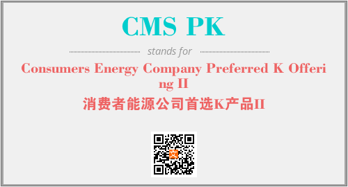 上述内容是“Consumers Energy Company Preferred K Offering II”作为“CMS PK”的缩写,解释为“消费者能源公司首选K产品II”时的信息,以及英文缩略词CMS PK所代表的英文单词,其对应的中文拼音、详细解释以及在英文中的流行度和相关分类、应用领域及应用示例等。