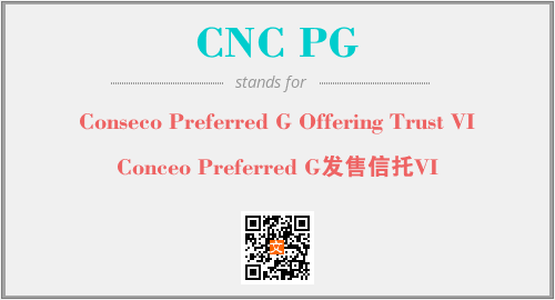 上述内容是“Conseco Preferred G Offering Trust VI”作为“CNC PG”的缩写,解释为“Conceo Preferred G发售信托VI”时的信息,以及英文缩略词CNC PG所代表的英文单词,其对应的中文拼音、详细解释以及在英文中的流行度和相关分类、应用领域及应用示例等。