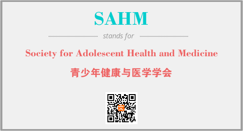 上述内容是“Society for Adolescent Health and Medicine”作为“SAHM”的缩写,解释为“青少年健康与医学学会”时的信息,以及英文缩略词SAHM所代表的英文单词,其对应的中文拼音、详细解释以及在英文中的流行度和相关分类、应用领域及应用示例等。