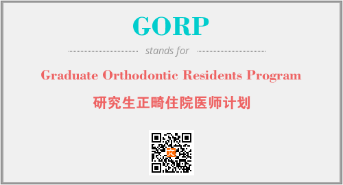 上述内容是“Graduate Orthodontic Residents Program”作为“GORP”的缩写,解释为“研究生正畸住院医师计划”时的信息,以及英文缩略词GORP所代表的英文单词,其对应的中文拼音、详细解释以及在英文中的流行度和相关分类、应用领域及应用示例等。
