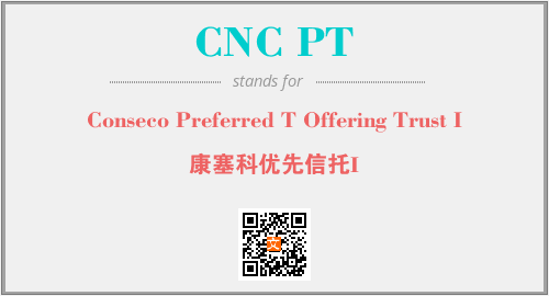 英文缩略词“CNC PT”经常作为“Conseco Preferred T Offering Trust I”的英文缩写来使用,中文表示:“康塞科优先信托I”。本文将详细介绍英文缩写词CNC PT所代表英文单词,其对应的中文拼音、详细解释以及在英语中的流行度。此外,还有关于缩略词CNC PT的分类、应用领域及相关应用示例等。