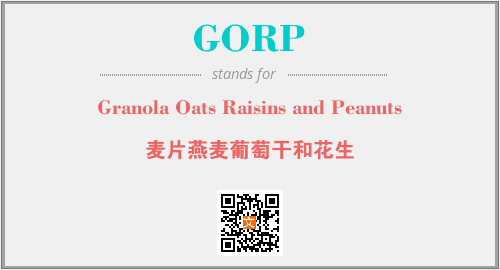 以上为Granola Oats Raisins and Peanuts英文缩略词GORP的中文解释,以及该英文缩写在英语的流行度、分类和应用领域方面的信息。