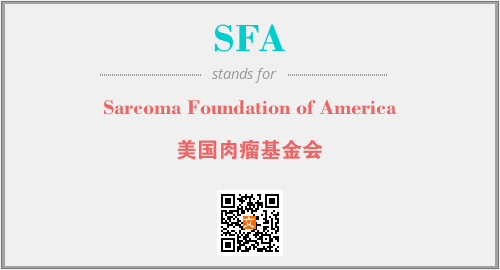 以上为Sarcoma Foundation of America英文缩略词SFA的中文解释,以及该英文缩写在英语的流行度、分类和应用领域方面的信息。