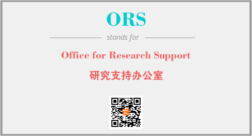 英文缩略词“ORS”经常作为“Office for Research Support”的英文缩写来使用,中文表示:“研究支持办公室”。本文将详细介绍英文缩写词ORS所代表英文单词,其对应的中文拼音、详细解释以及在英语中的流行度。此外,还有关于缩略词ORS的分类、应用领域及相关应用示例等。